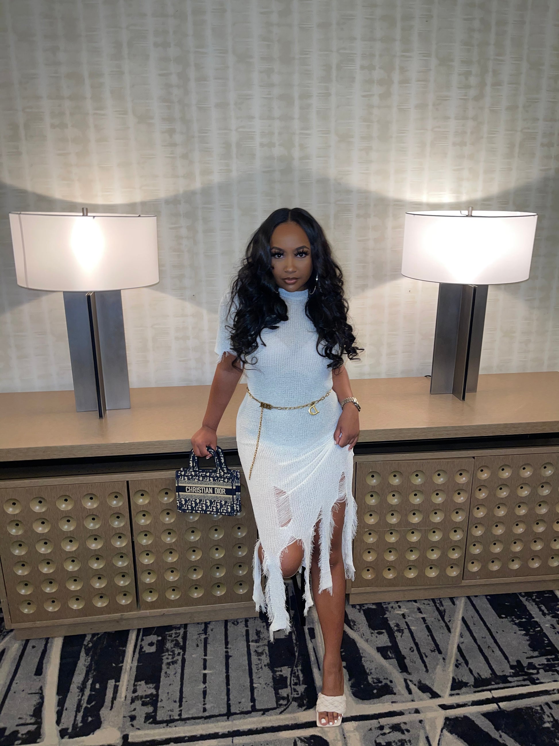 Ivory distressed knit dress. This look can be worn in various styles: dress, cover-up, and/or top. This item has a relaxed fit.