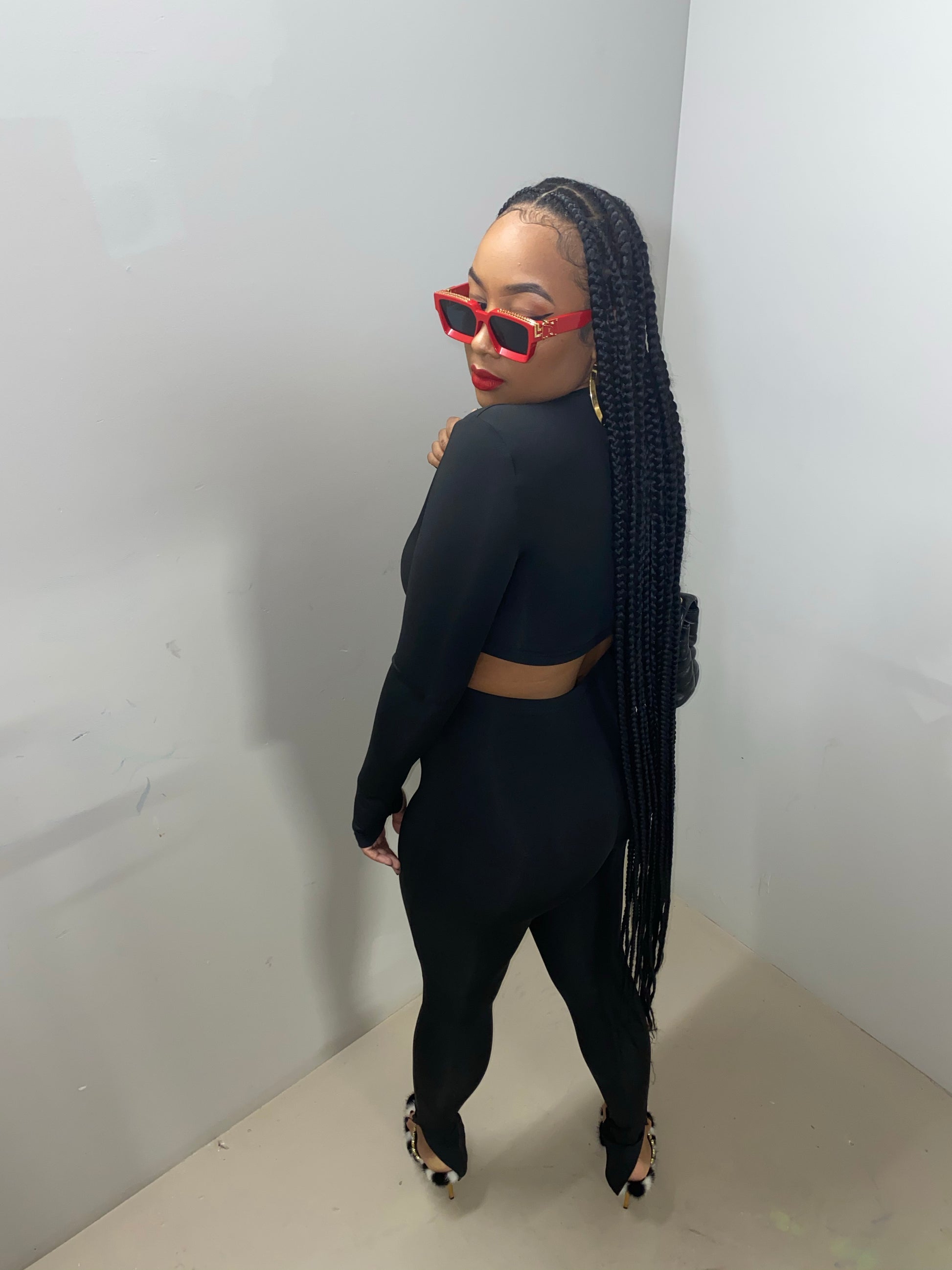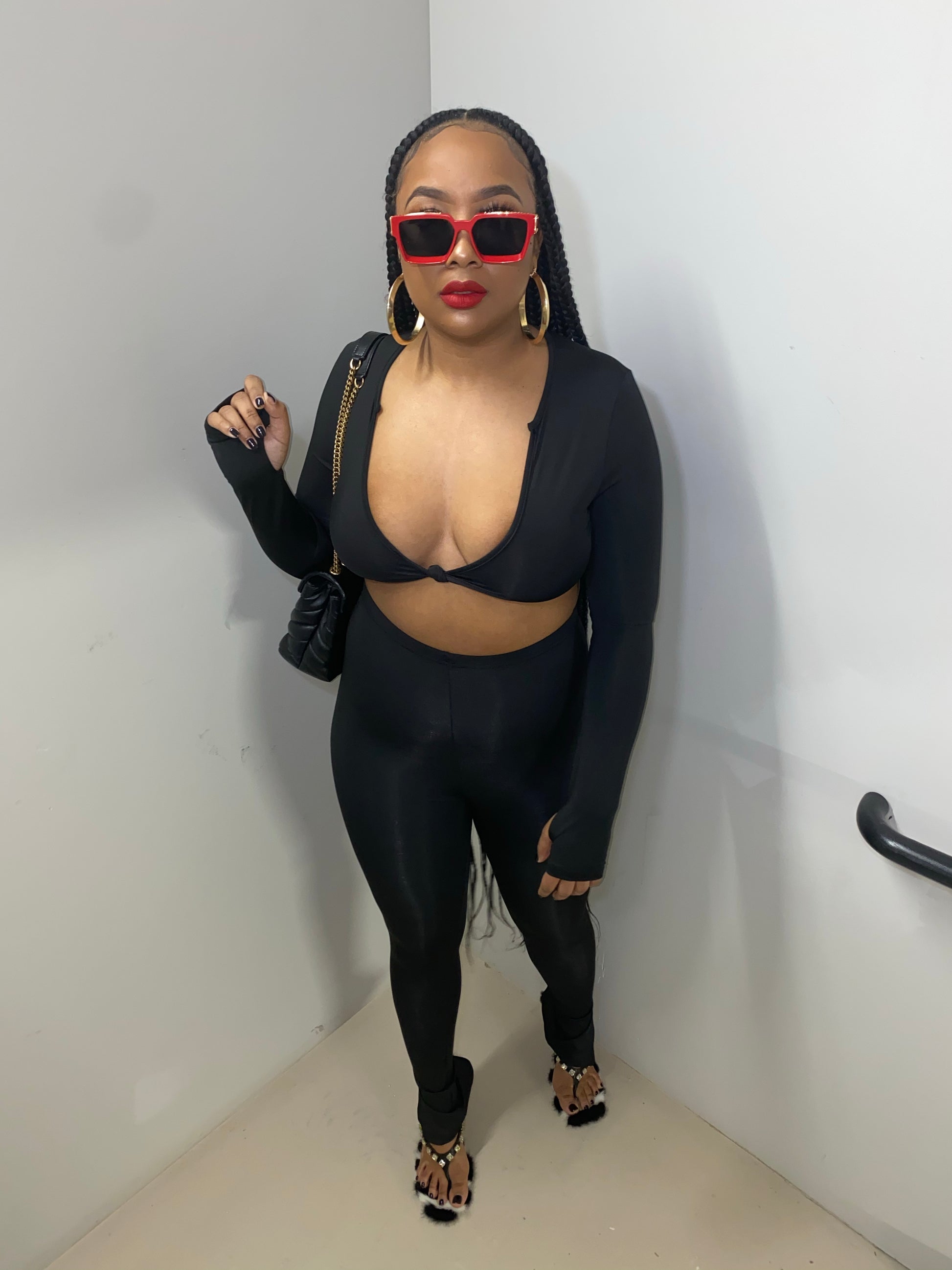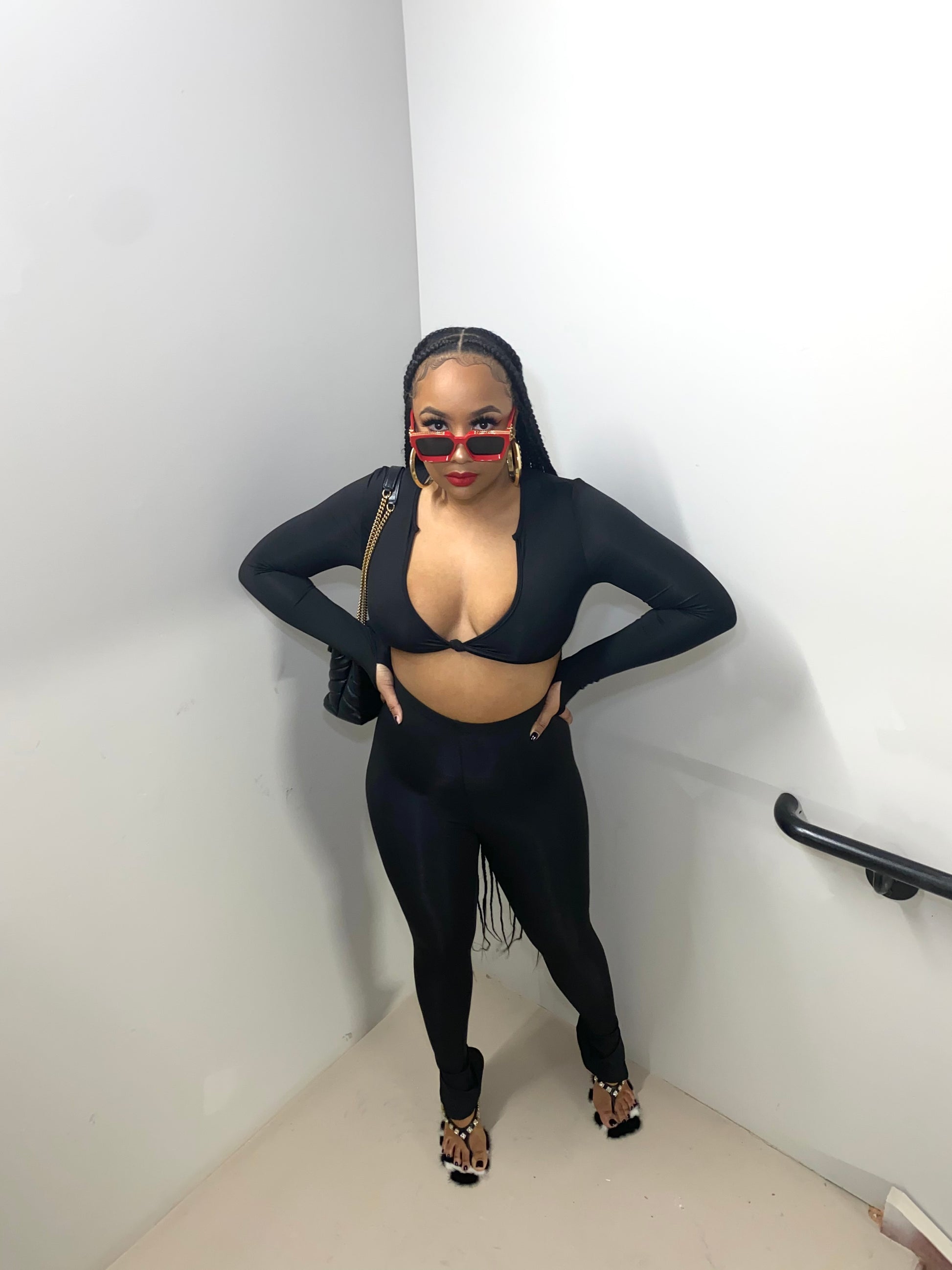 Two piece set, top knotted in the middle with matching colored legging with side spit at the bottom.