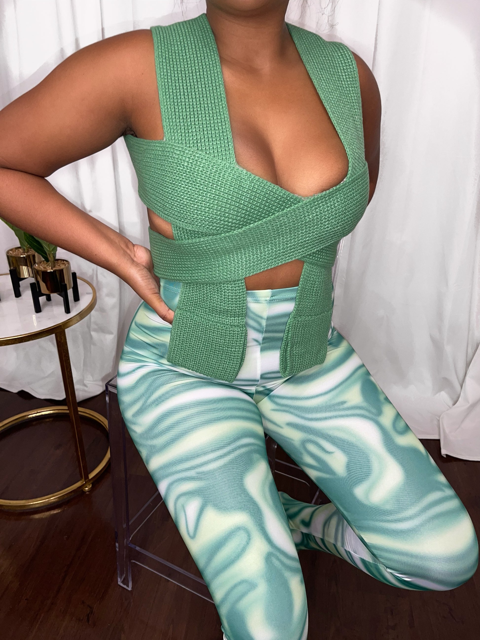 Multi-wear sweater top available in colors: green, cream, & pink. Top has great stretch with soft sweater material. Very comfortable & not itchy. Link for bottoms attached below.