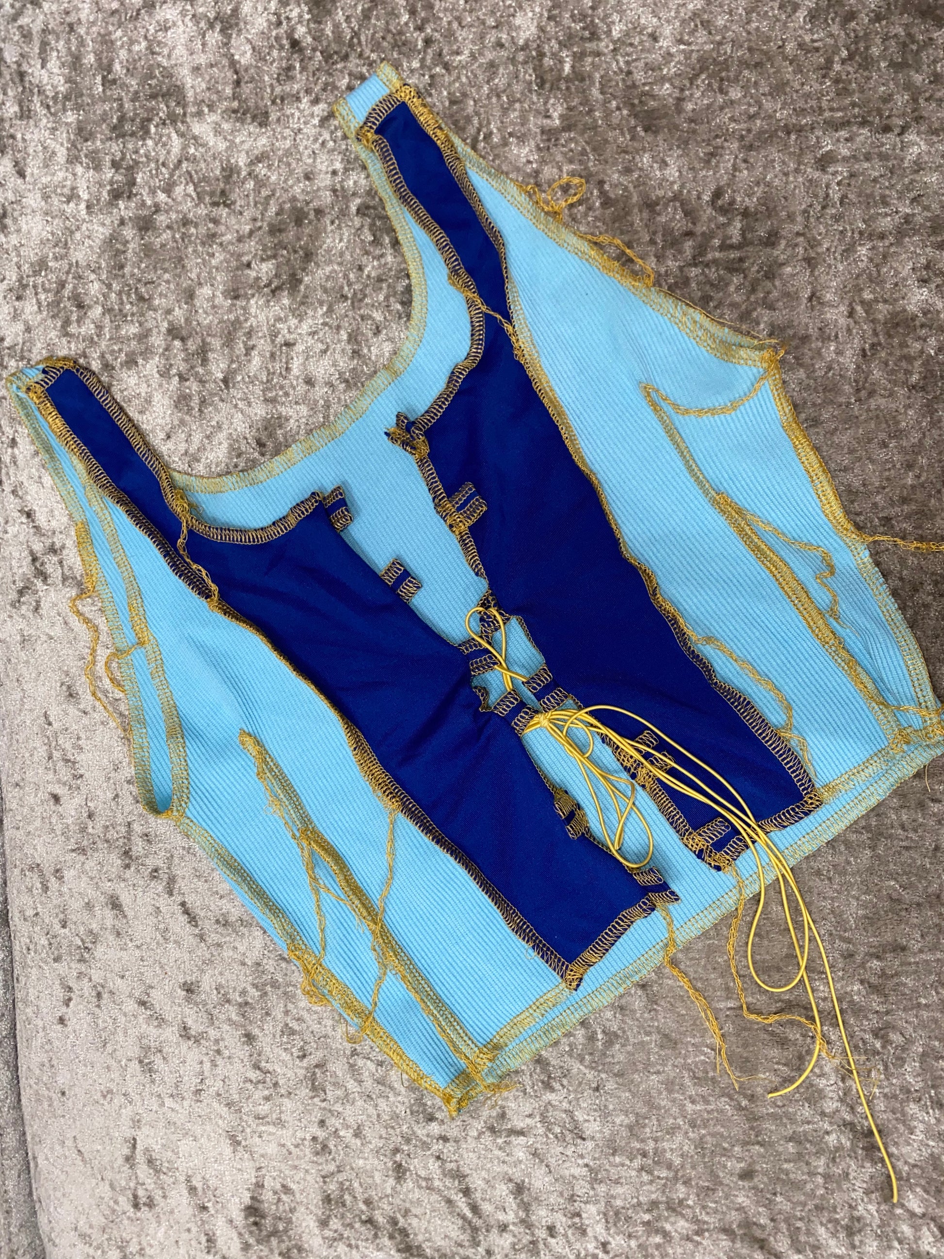 Lace up tank comes with string and unfinished hem. Top is perfect to pair with any bottom cute statement piece.
