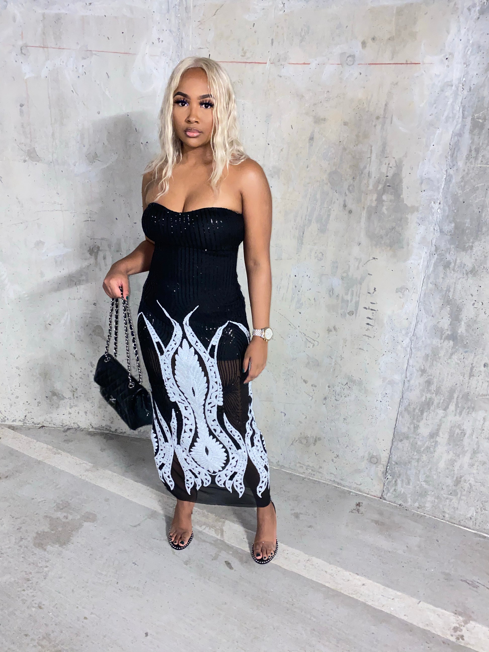 Sequin ankle length bodycon dress perfect for NYE or a night in the lights.