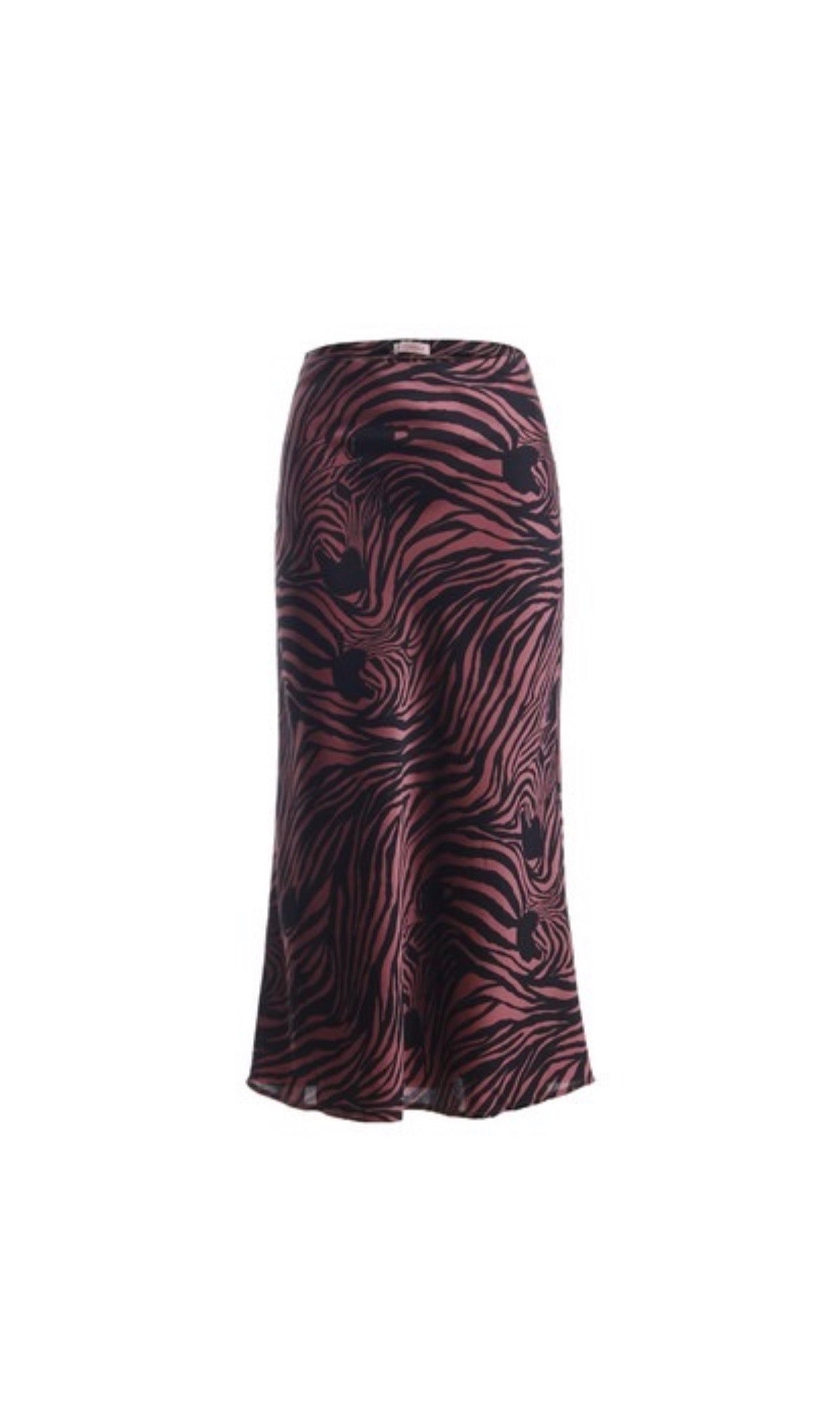 Silk satin tiger striped skirt. Perfect for that vaca get-away or a night on the town. Can be tied on the side fits true to size. Color is Mauve.